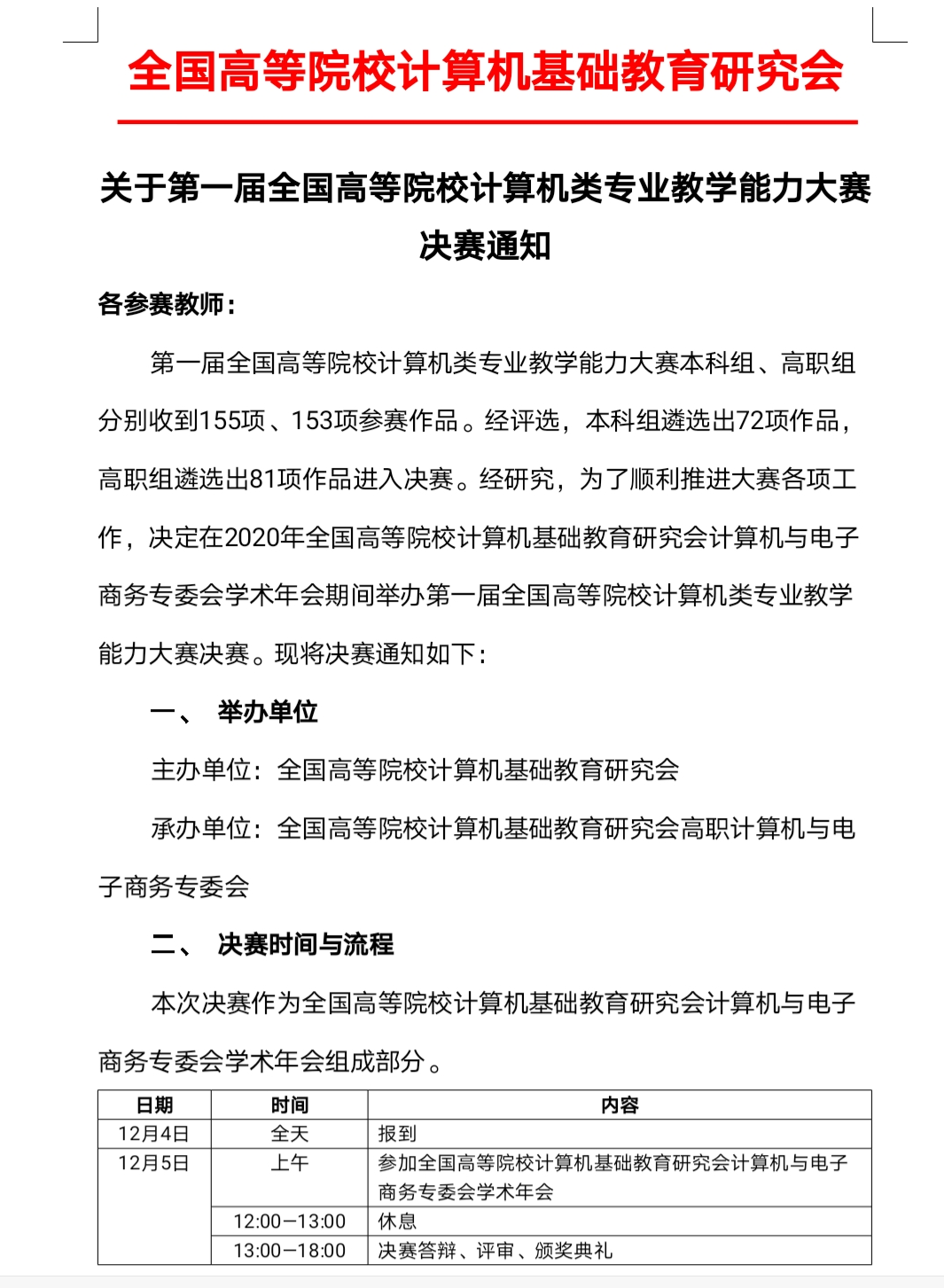 第一届全国高等院校计算机类专业教学能力大赛本科组、高职组分别收到155项、153项参赛作品。经评选,本科组遴选出72项作品,高职组遴选出81项作品进入决赛。