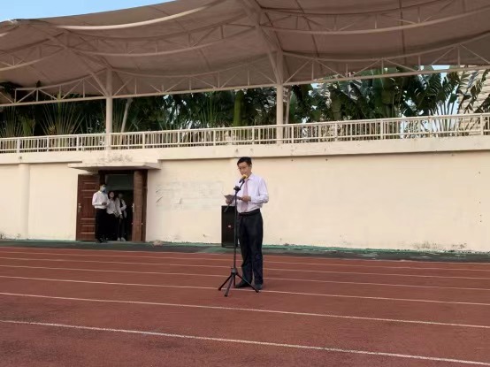 仪式最后,校党委委员、宣传部长、我院党支部书记陈磊院长进行了国旗下讲话.陈院长带领在场师生回顾了不平凡的2020,展望了充满希望的2021,并提出, 2021这个“十四五”规划开局之年,建党100周年,“两个一百年”奋斗目标的历史交汇点,是中华民族实现伟大复兴“中国梦”的征程中具有里程碑意义的年份,同学们要坚定理想信念,养成良好习惯,把握机遇、迎接挑战,用奋斗书写好青春华章。