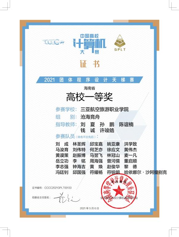 我院学子喜获中国高校计算机大赛-团体程序设计天梯赛海南省高校一等奖,这是我院校企共建项目稳步开展、学生综合实力提升的又一体现。