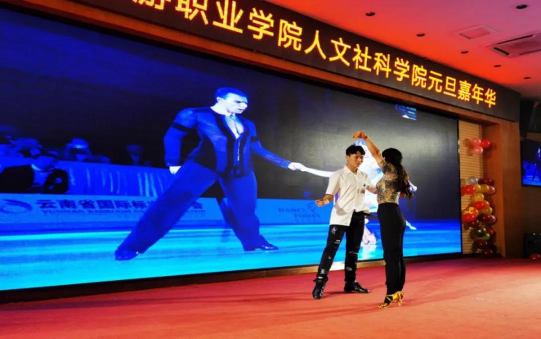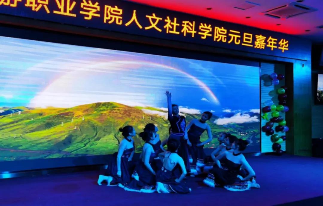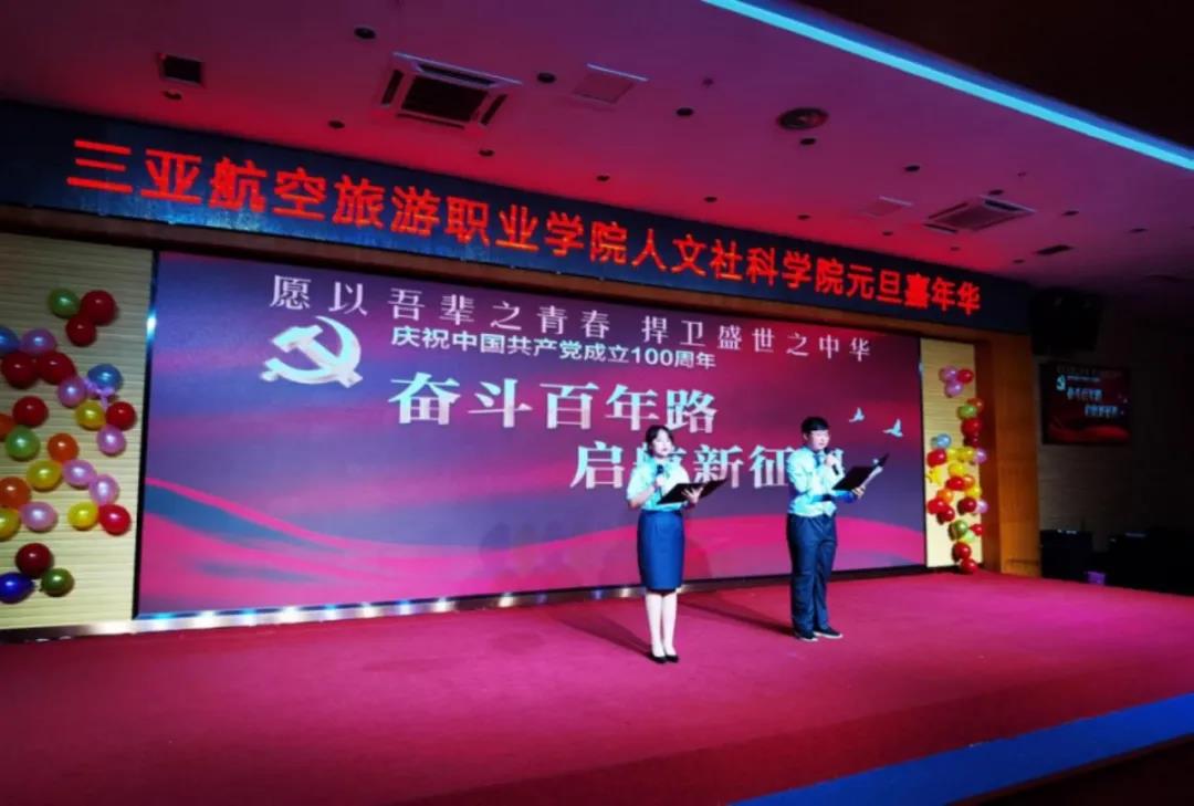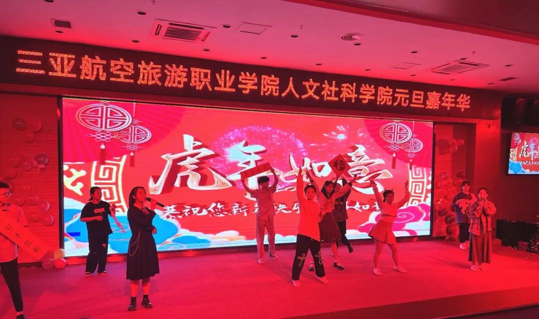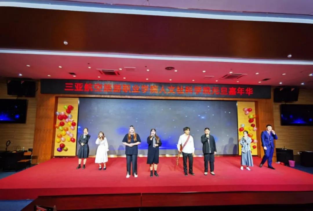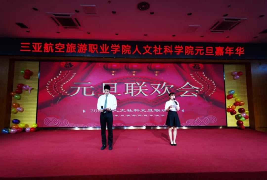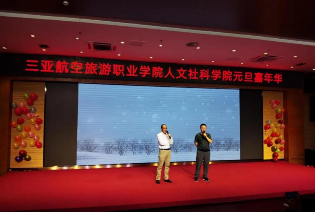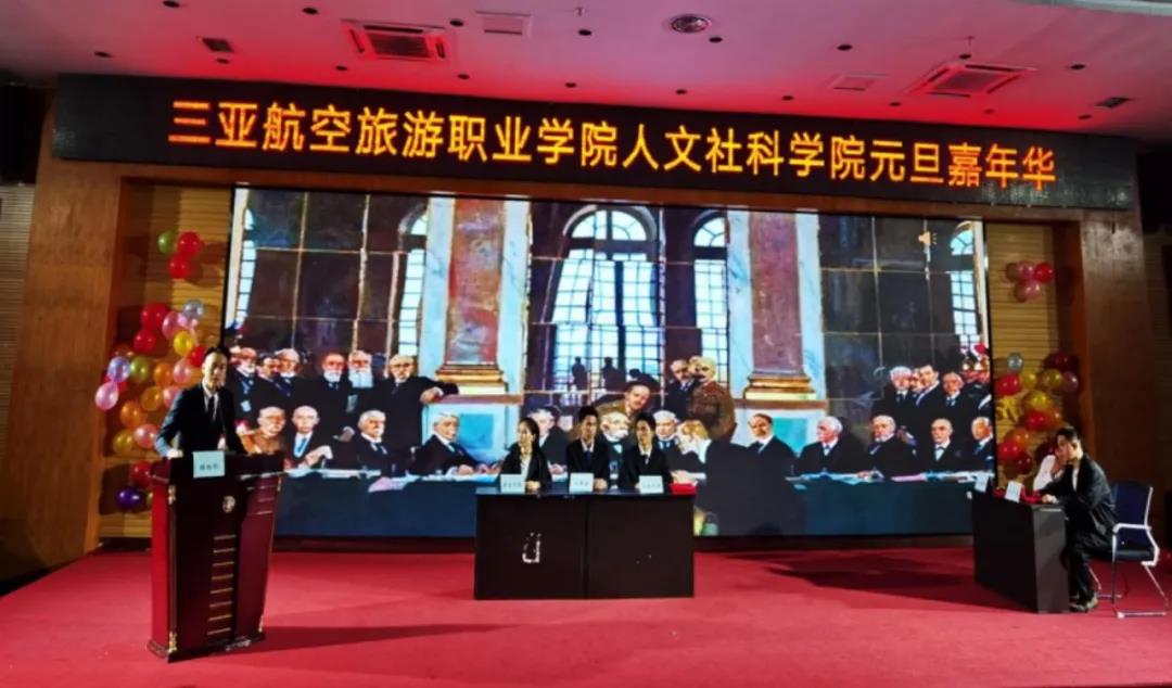 2021年12月23日晚,三亚航空旅游职业学院人文社科学院在图书馆报告厅举行了元旦联欢嘉年华。出席本次活动的嘉宾有三亚航空旅游职业学院党委副书记、分管学生工作副校长梁维意、教学督导陈褒丹、人文社科学院院长陈磊、计算机教研室主任刘夏、英语教研室主任周华侨及各位老师们。