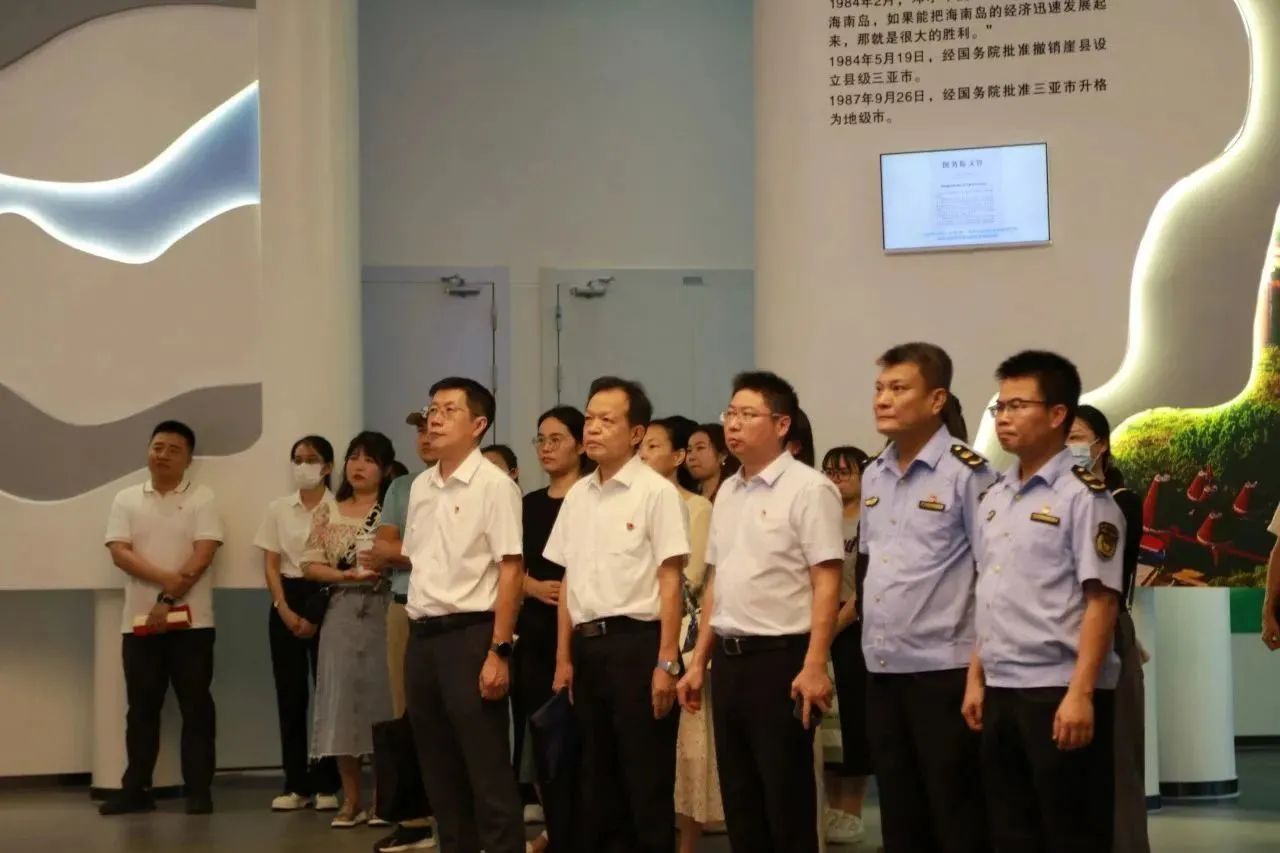 8月24日下午15时,学院党支部与三亚森旅投资有限公司联合党支部、三亚市综合执法局机关第二党支部在三亚市丰兴隆党群主题公园共同开展“学党史明初心 悟思想促业务”主题党日活动。学院党支部书记陈磊、副书记刘亢,三亚森旅投资有限公司联合党支部书记王玥、纪检委员郑美,海南航程旅游发展有限公司副总经理赵志斌,三亚市综合执法局机关第二党支部书记丁建国出席,共61名党员领导干部参加。