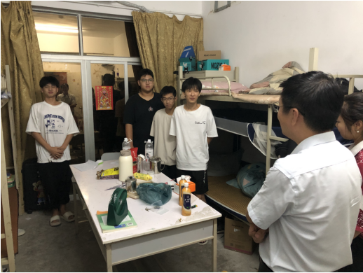 为深入推进习近平新时代中国特色社会主义思想主题教育走深走实,落实立德树人的根本任务,筑牢校园安全,2023年6月15日晚,学院副院长刘亢带领学生科老师深入学生宿舍,开展走访调研安全检查活动。