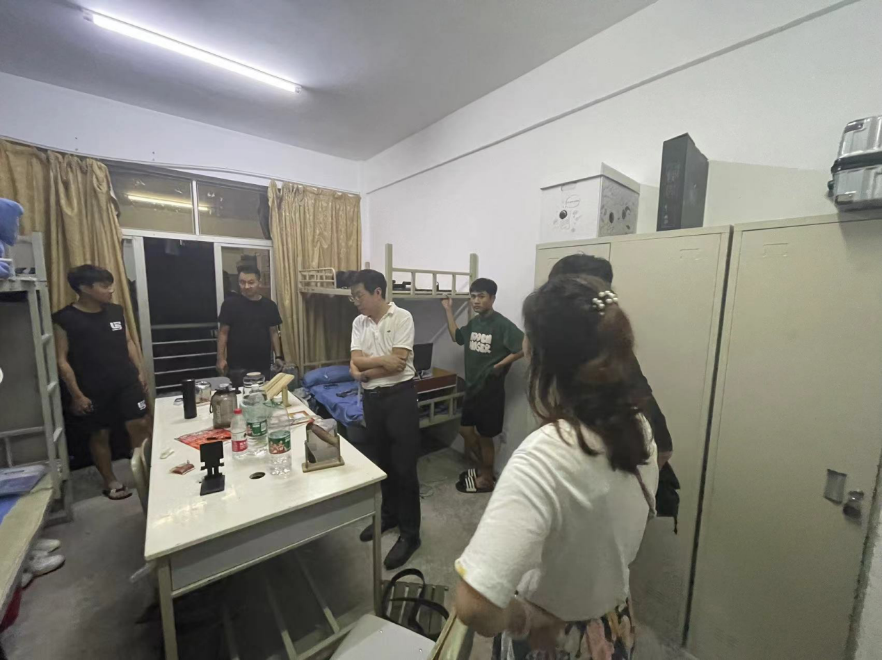 9月14日晚上,副院长刘亢、学生科科长李雪以及学院辅导员和学生主管深入到学生宿舍中,为学生排查宿舍安全隐患并且解答学生学习生活中的安全问题。刘亢副院长提到:“不良习惯要改掉,吸烟有害健康,火星子可能会引发消防事件,要特别注意。”