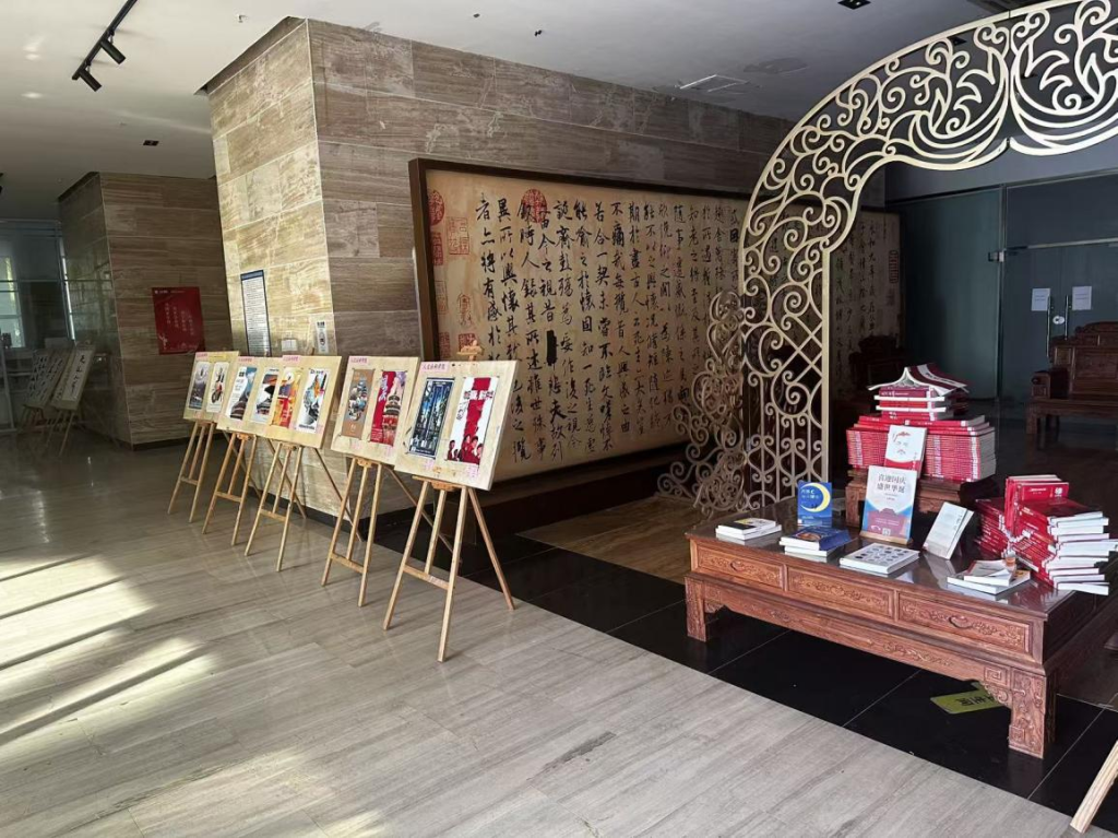 国庆假期期间(9月30日 - 10月8日),红色主题书画展在图书馆一楼展厅正式开展。展览现场以 “红色为主色调,历史为时间轴” 进行布置:展厅内按 “红色历史 — 爱国精神 — 时代新篇” 分为三个展区,搭配作品解读牌,详细说明每幅作品的创作背景与主题内涵。