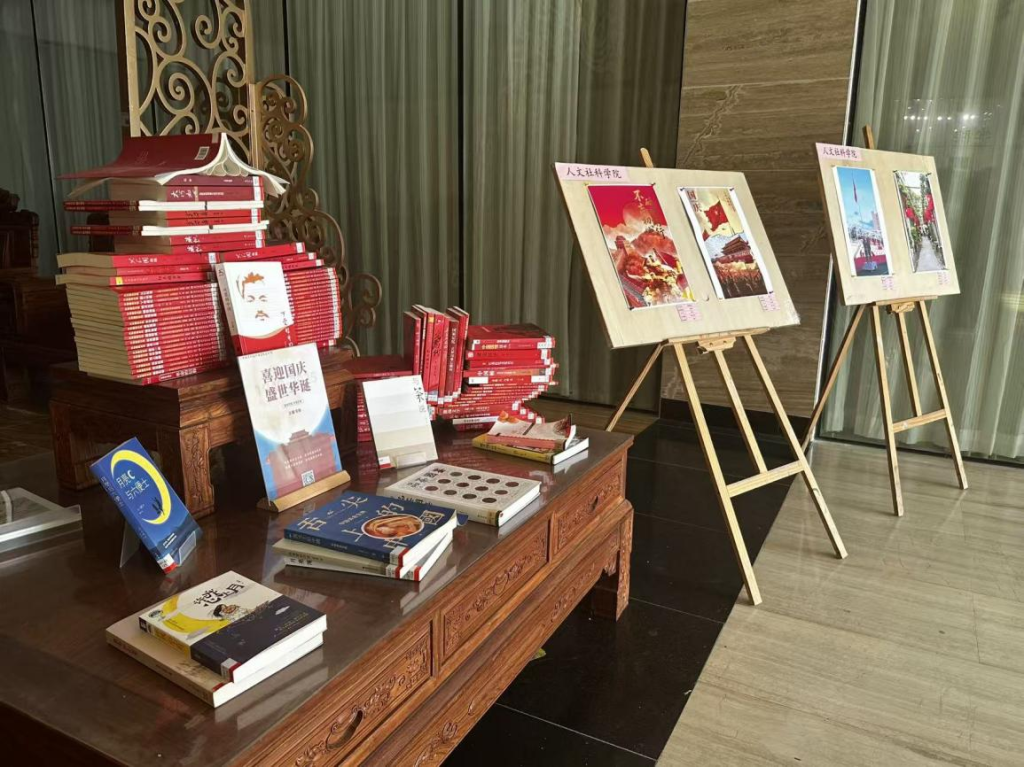 在国庆 76 周年的重要时间节点,人文社科学院立足 “立德树人” 根本任务,结合学科特色与校园文化建设需求,提出以 “红色书画” 为载体的国庆纪念活动方案。考虑到校图书馆作为校园文化传播核心阵地的资源优势,双方达成合作共识,明确分工:学院负责统筹协调、作品征集与组织评审,图书馆负责展览场地布置、观展引导与文化氛围营造。