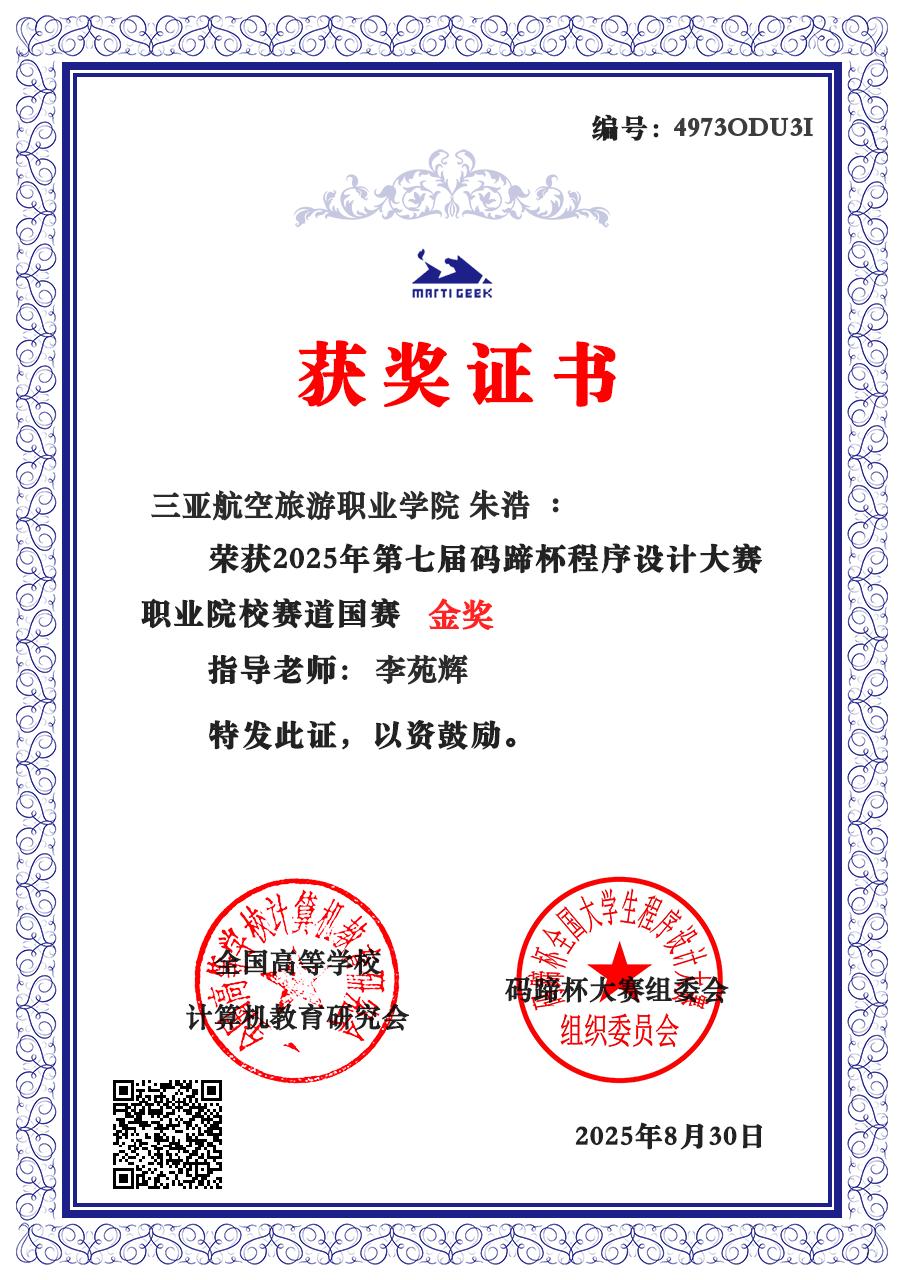 人文社科学院软件技术专业、计算机网络技术专业学生在2025年第七届码蹄杯全国大学生程序设计大赛中展现出卓越的专业技能与创新精神,在职业院校赛道中取得优异成绩。